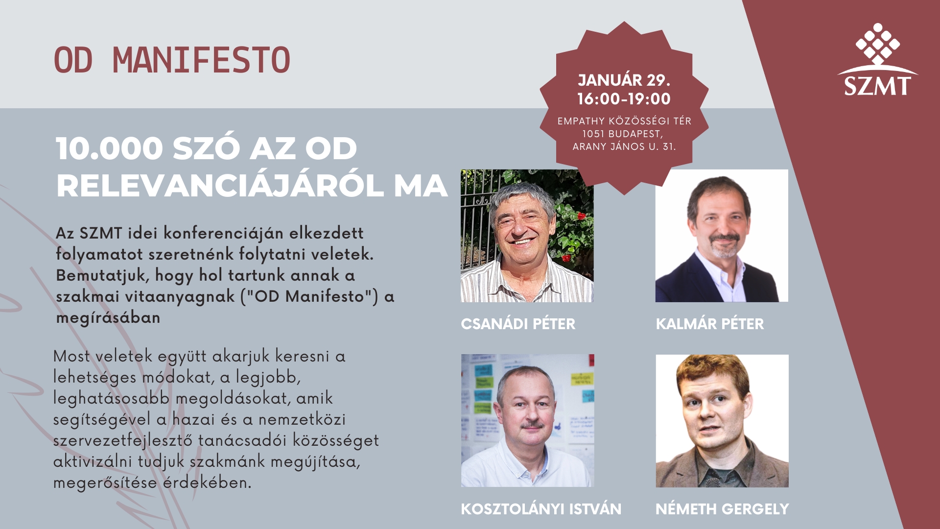 Az SZMT idei konferenciáján elkezdett folyamatot szeretnénk folytatni veletek. Bemutatjuk, hogy hol tartunk annak a szakmai vitaanyagnak ("OD Manifesto") a megírásában, aminek főbb gondolatait megosztottuk a Konferencia résztvevőivel.