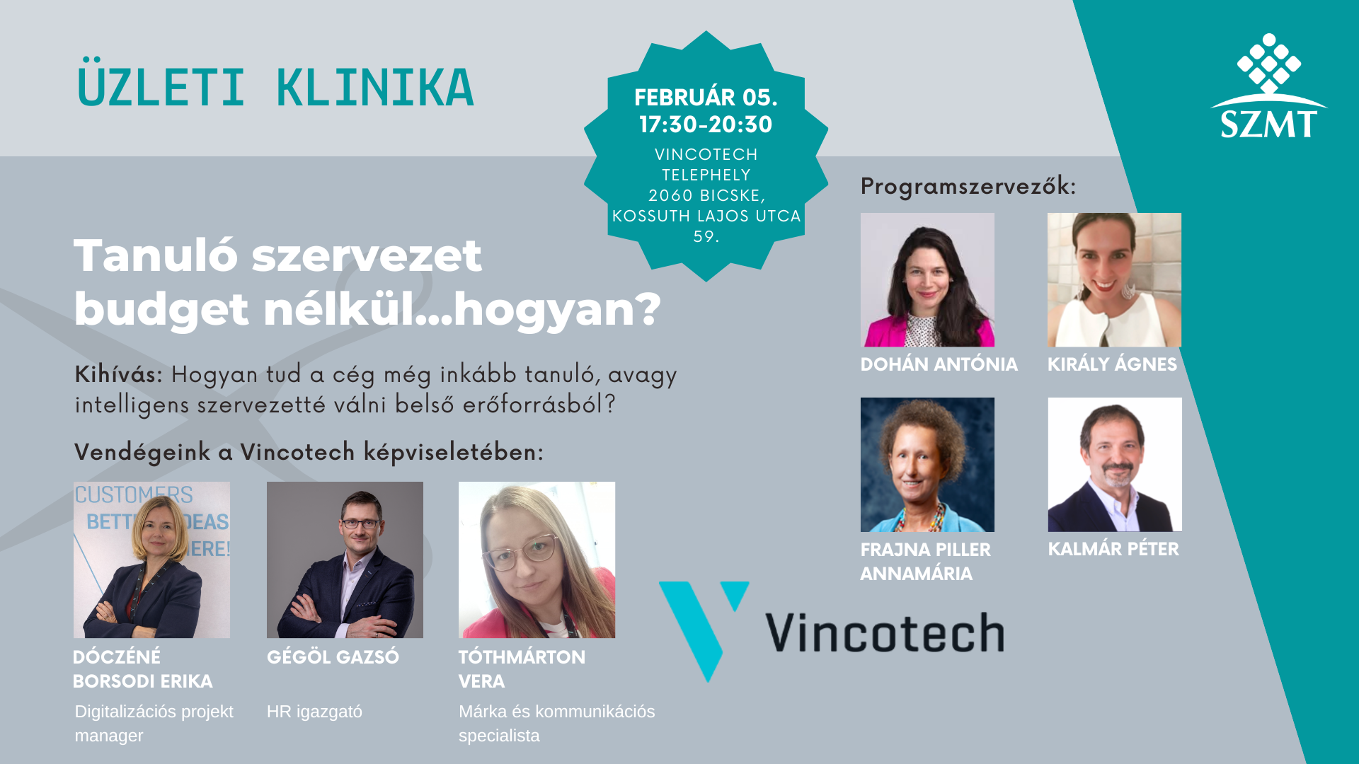 A következő Üzleti Klinika alkalmon a Vincotech lesz az ügyfelünk. A programot ezúttal, visszatérve a hagyományainkhoz, az "ügyfelünk" telephelyén tartjuk.