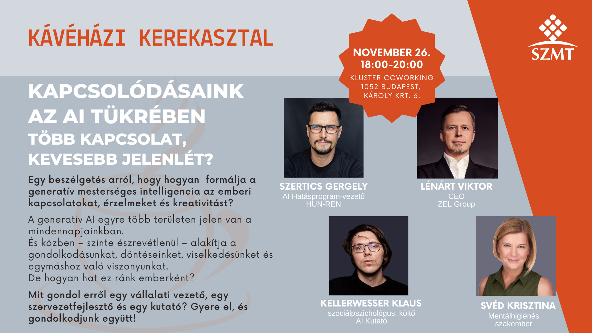 Kávéházi Kerekasztal: Kapcsolódásaink az AI tükrében – Több kapcsolat, kevesebb jelenlét?
